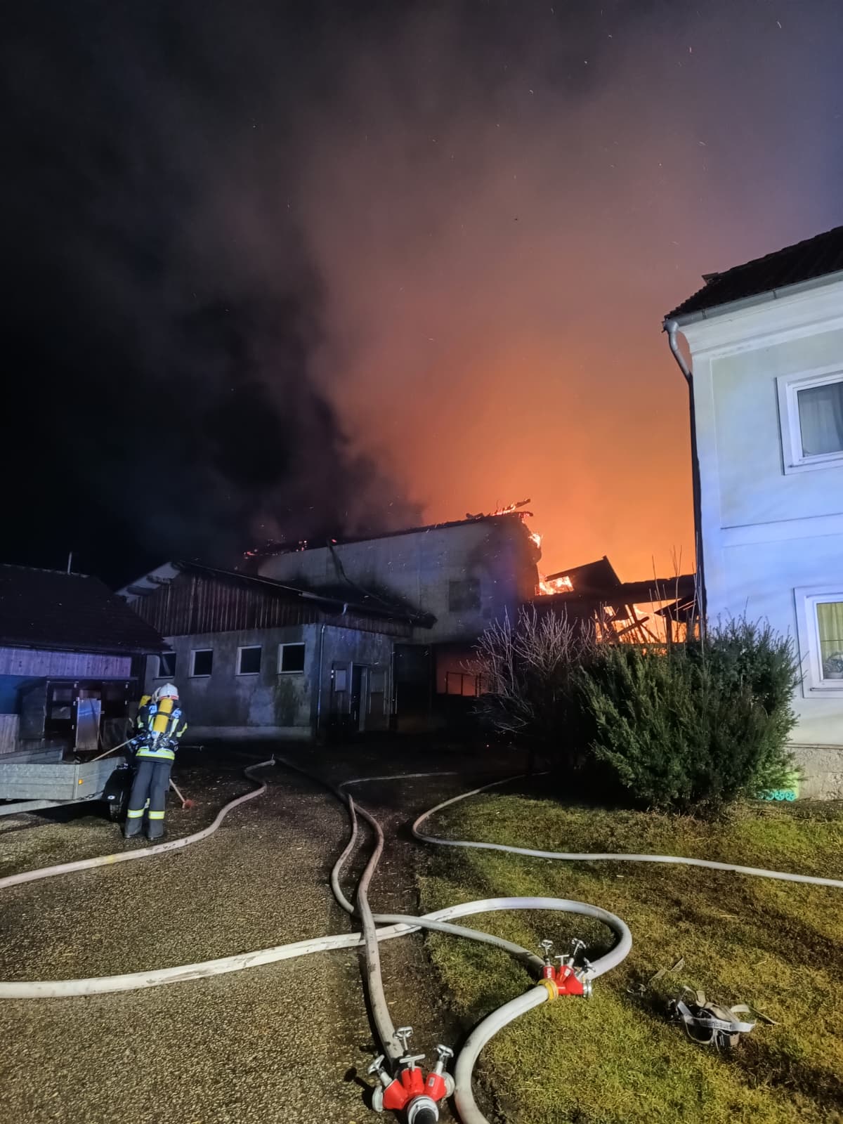 In den frühen Morgenstunden des 13. Februar 2026 wurde die Freiwillige Feuerwehr Weibern gemeinsam mit zahlreichen Kräften aus dem Bezirk zu einem Großbrand nach Aubach (Gemeinde Haag am Hausruck) alarmiert. Was als Brand eines Stallgebäudes begann, entwickelte sich rasch zu einem stundenlangen Großeinsatz unter schwierigen Bedingungen.