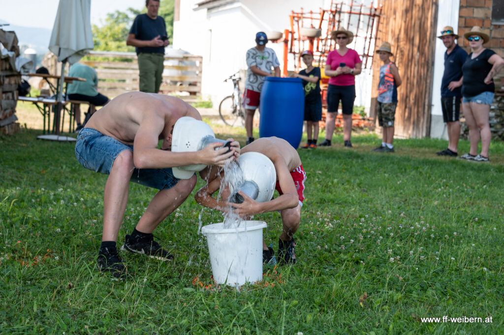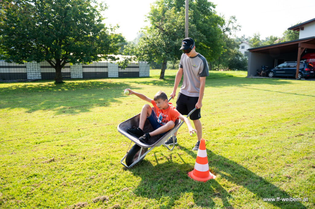 Am Freitagvormittag fand die erste Lagerolympiade statt. Die Jugendlichen und ihre Jugendbetreuer*innen mussten verschiedene Aufgaben meistern und ihr Können unter Beweis stellen. In der Route über Einberg, Dirisam und Grub war von Mühlsteinrollen bis Rückwärtszielspritzen alles dabei.