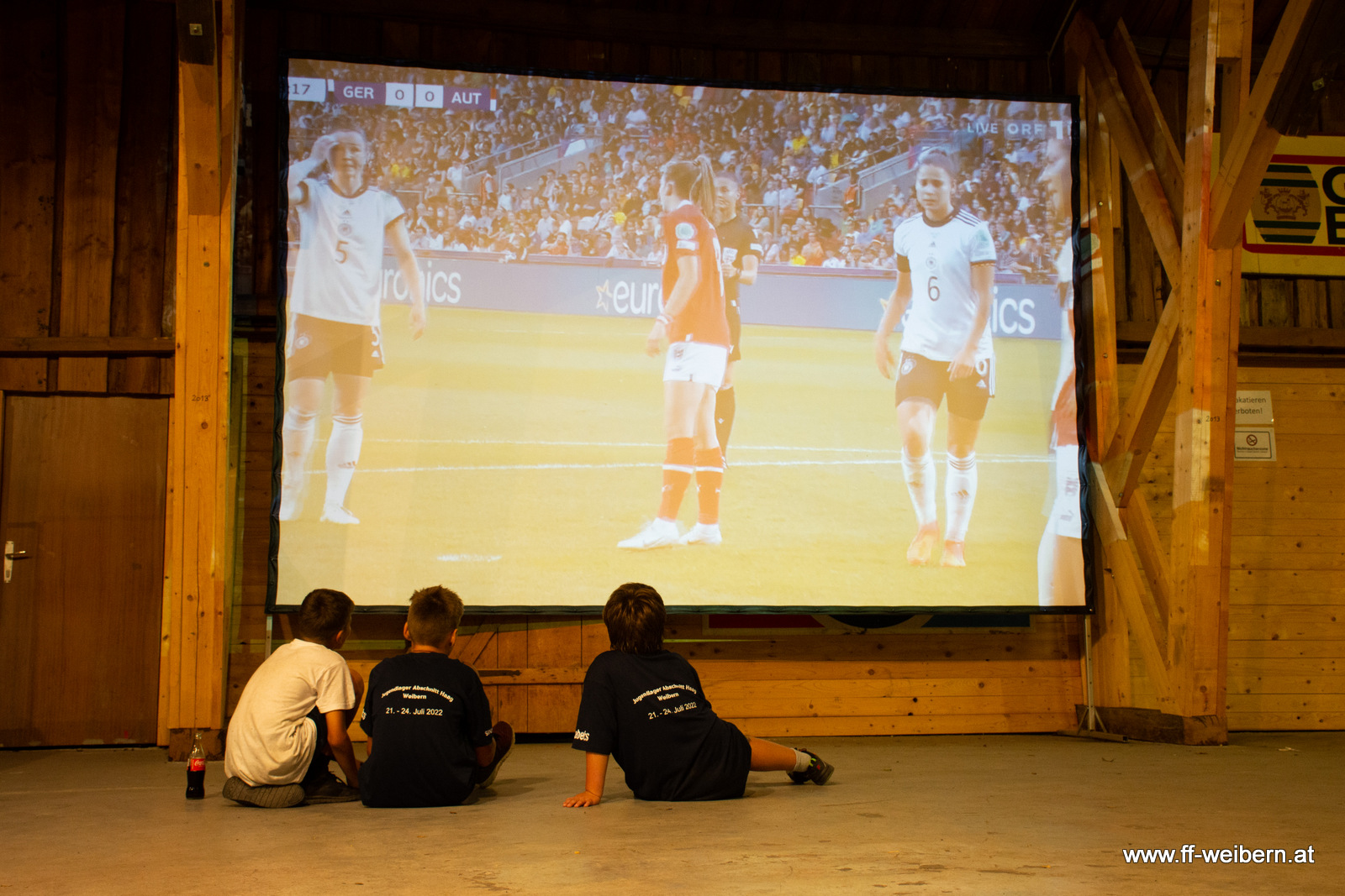 Die Anreise fand am Donnerstag, den 21.07.2022 zur Mittagszeit statt. Zuerst wurden die Zelte aufgeschlagen und die Vorratslager mit Cola und Chips aufgestockt. Nach dem Abendessen wurde das Jugendlager 2022 in Weibern feierlich eröffnet und die Fahne von der Jugendgruppe Weibern gehisst. Um den ersten Abend gemütlich ausklingen zu lassen, wurden verschiedene Spiele gespielt, Macarena getanzt und nebenbei das Fußballspiel der österreichischen Damen gezeigt.